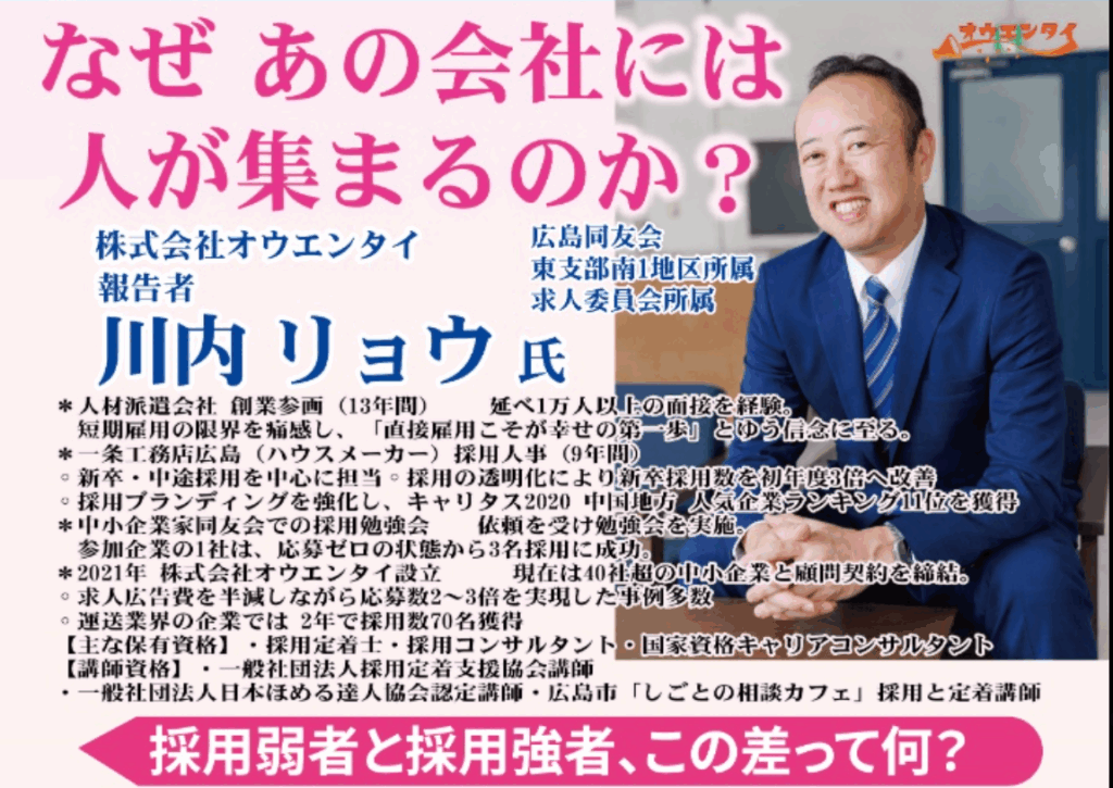 人材派遣会社経営幹部として、広島をはじめ人材確保に13年間従事しノウハウを獲得。