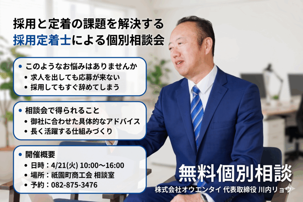現在は、大好きな広島の中小企業に良い人が入り、定着してもらうことを目的とし、培ってきた採用スキルで採用に困っている中小企業へノウハウを提供している。