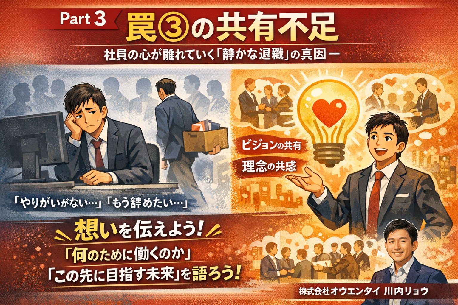 【Part 3】罠③:理念の共有不足〜社員の心が離れていく「静かな退職」の真因〜